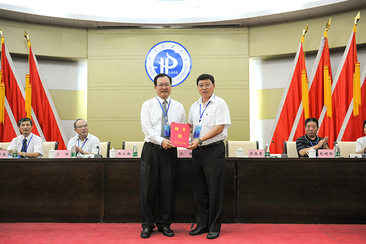 会议期间,海峡两岸应急管理学会理事长蔡俊章受聘为我校名誉教授,杨小林为其颁发聘书。