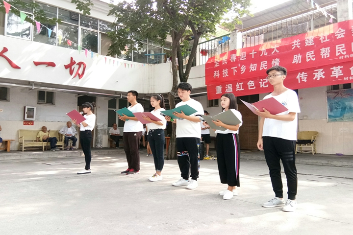 通过此次活动,实践团不仅为老人们带去欢乐,而且进一步扩大了对十九大的宣传,这有利于共建和谐美好社会。(材料学院)