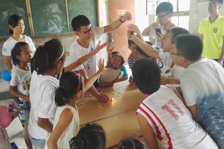 7月15日,能源学院“微光尘夏”支教团赴文昌初中进行支教活动。