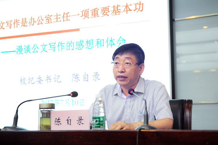7月10至11日,学校举办2017年暑期办公室主任培训班。校党委书记邹友峰出席会议并讲话,党办、校办全体人员与其他各单位办公室主任和工作人员90余人参加培训。会议分别由校长助理兼校办主任孟钟剑和党办主任郎付山主持。