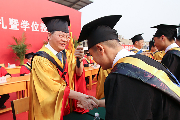 校党委书记邹友峰为毕业生拨正流苏,授予学位