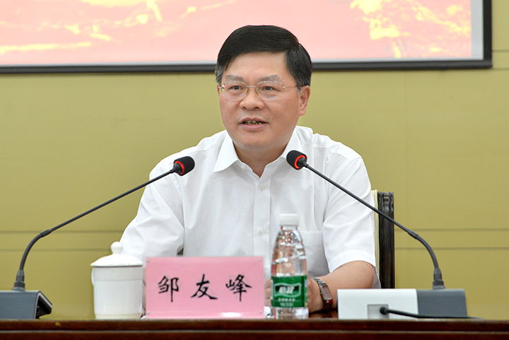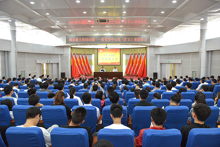 校党委书记邹友峰主持报告会,党委中心组全体成员参加。各党委(党总支)书记、副书记与部分职能部门工作人员共同聆听了报告。