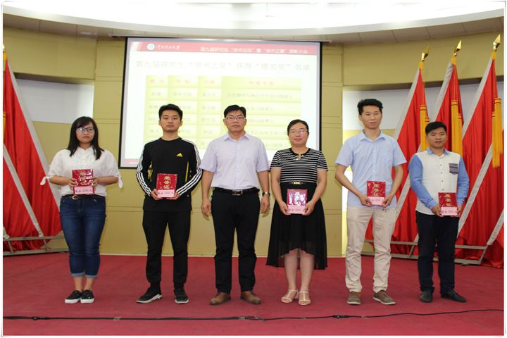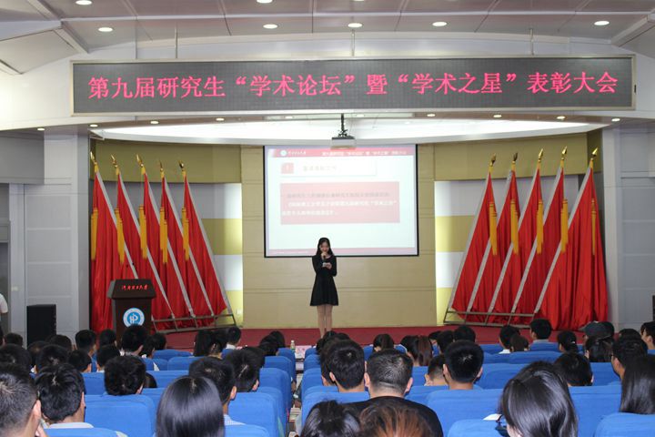 会上,材料学院博士研究生王鹏、化工学院硕士研究生常慧琴和工商学院硕士研究生任腾飞代表第九届研究生“十佳学术之星”从研究内容、创新及成果、感悟及建议、研究展望等方面依次进行了风采展示,“学术论坛”优秀论文作者代表资环学院张召召、能源学院张帅龙和外国语学院张雅琦分别结合自己的学术论文依次与大家进行了讨论交流。本届表彰大会沿用研究生作为主持人的形式,获奖代表采用PPT汇报形式与大家进行交流,形式多样,内容丰富,让与会研究生分享了一场学术盛宴。至此,我校第九届研究生“学术论坛”暨“学术之星”表彰大会圆满落幕。