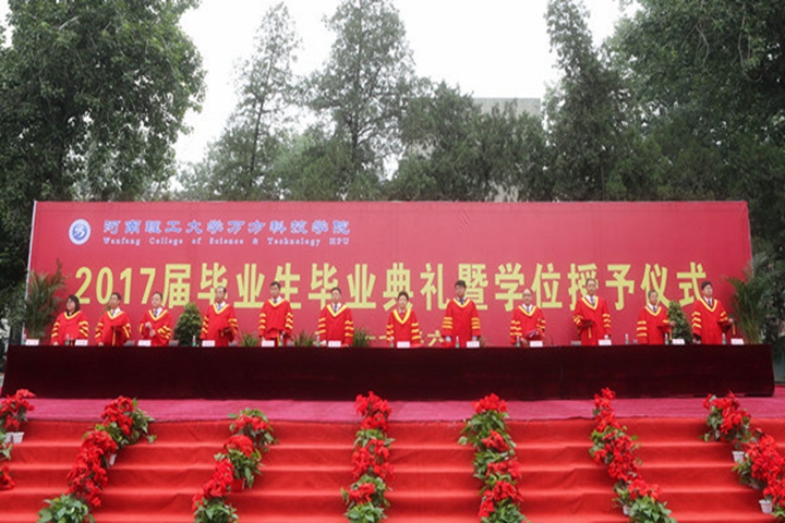 庄重的升国旗仪式后,万方学院副院长邓乐宣读学院关于授予2017届毕业生毕业证、学位证的决定。万方学院党委副书记尹铁军宣读河南省教育厅、万方科技学院关于表彰2017届优秀毕业生的决定。随后,领导先后为荣获省级优秀毕业生、学院优秀毕业生称号的毕业生代表分别颁发了毕业证书和荣誉证书。毕业生代表向四年来培养自己成长成才的教师和养育自己长大的父母亲深情致谢并送上鲜花祝福。毕业生代表于瀚智、毕业生家长代表曹瑞伟、教师代表陈水生先后表达了对学院的感激之情和对2017届毕业生的美好祝愿。