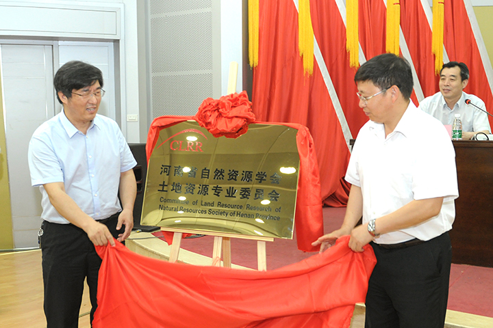 开幕式后,杨小林与冯德显共同为河南省自然资源学会土地资源专业委员会进行了揭牌。