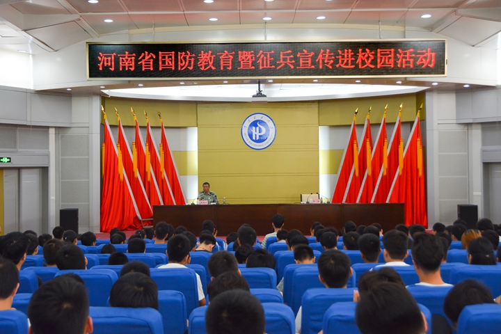 5月26号下午,由河南省国防教育办公室组织的“国防教育暨征兵宣传进校园活动”在我校圆形报告厅举行。石家庄陆军指挥学院教授陈胜武作了题为《青年学生的国防责任》的主题报告,部分师生参加了报告会。报告会由武装部部长邵强主持。
