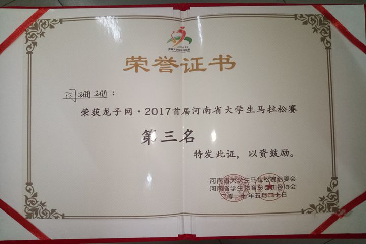参赛人员面向河南省各高校在校大学生,大赛项目分为男子10公里和女子10公里,全省共有110所高校3032人参赛。在我校教授赵新平的组织指导下,闫珊珊获得女子组第三名的好成绩,王研博与李龙分获男子组第20和22名。这是继我校学子在日前的扬州马拉松后又一次取得了优异成绩,为我校争得了荣誉。