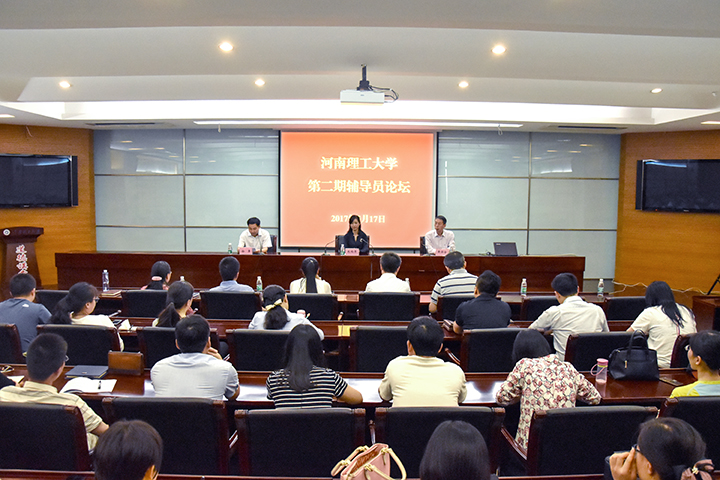 5月17日下午,学生工作部在明德楼一楼会议室举办河南理工大学第二期辅导员工作论坛,河南农业大学辅导员朱瑞萍作了题为《热点-理论视角下的大学生思想政治教育——以辅导员职业能力大赛为切入点》的报告,学生工作部部长黄保金、部分学院党委副书记及专职辅导员100余人参加论坛。论坛由学生工作部副部长孙彦主持。
