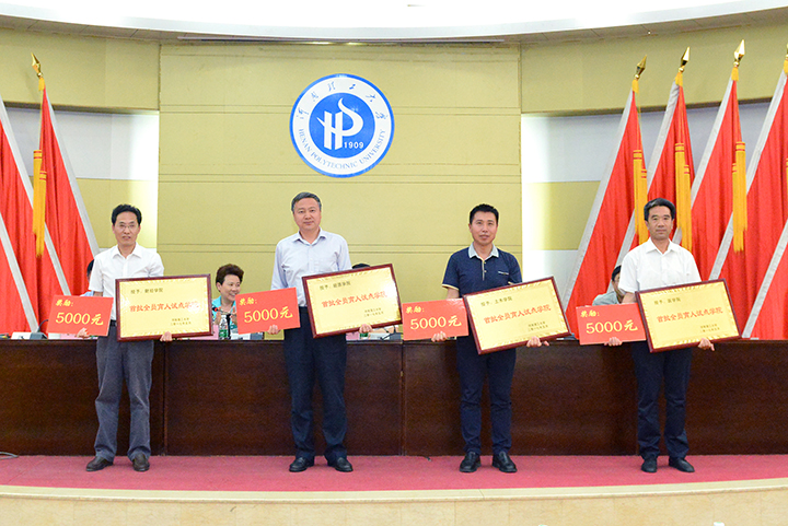 副校长赵俊伟宣读了《河南理工大学关于公布首批全员育人试点学院验收结果的通知》。主席台就坐的校领导为4个首批全员育人试点学院颁发了牌匾和奖金。土木学院党委书记朱天明、能源学院党委副书记支光辉、医学院党委副书记时洋、财经学院院长梁丽娟分别汇报了本学院近一年来的全员育人试点工作。