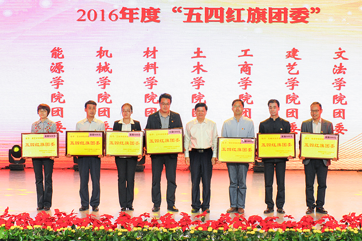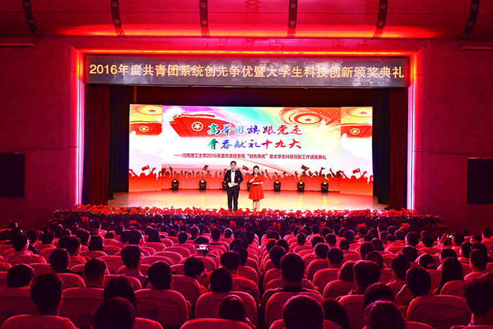 高举团旗跟党走,青春献礼十九大。5月4日晚,学校2016年度共青团系统“创先争优”暨大学生科技创新颁奖典礼于南校区小礼堂隆重举行。校领导邹友峰、杨小林,卫中玲、安士伟、赵俊伟、孟钟剑出席颁奖典礼,各学院、职能部门的领导,以及学校基层团组织负责人和团员代表参加典礼。