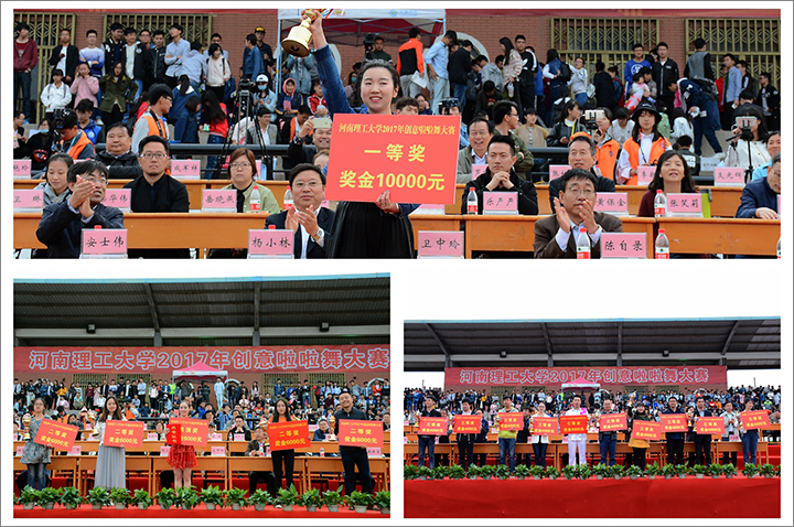 4月25日下午,2017年创意啦啦舞决赛在我校西区体育场举行。校领导杨小林、卫中玲、安士伟、陈自录、解伟出席大赛现场并为获奖学院颁奖。各学院和相关职能部门负责人及3000余名师生共同观看了比赛。