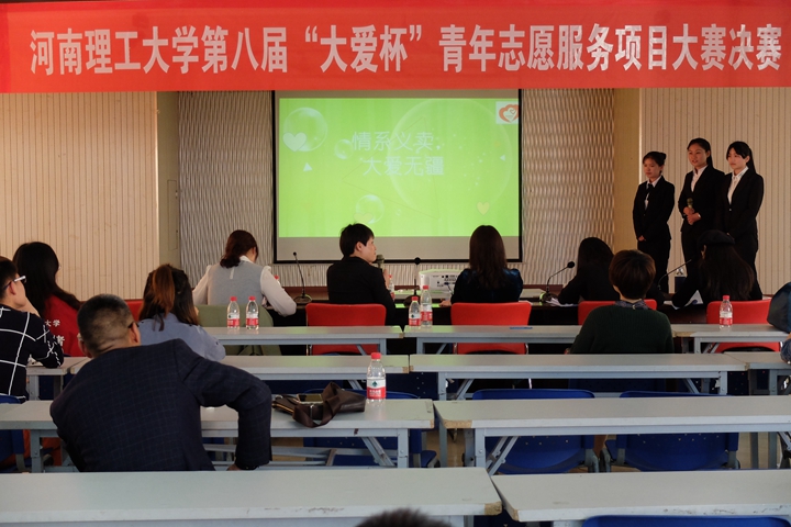 践行大爱精神,展现理工风采。4月18日下午,由校团委主办、校青协承办的河南理工大学第八届“大爱杯”青年志愿服务大赛决赛在大学生活动中心220举行。能源学院党委书记王婕,焦作孝德联盟会吕洁等5位校内外专家应邀担任本次大赛评委,部分学院分团委书记和参赛代表共同观看了比赛。