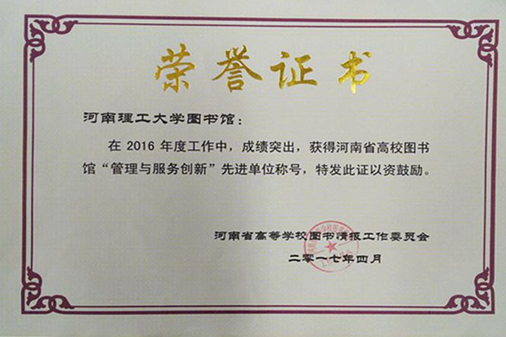 日前,在河南省高校图书馆2017年馆长会议上,我校图书馆荣获2016年“河南省高校图书馆‘管理与服务创新’先进单位”称号,并受到大会表彰。