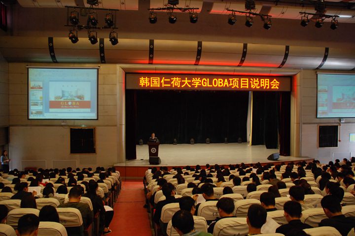 4月11日下午,韩国仁荷大学国际双学位GLOBA项目说明会在我校小礼堂举办,韩国仁荷大学驻中国办事处主任张素文和近千名师生共同参加了说明会。说明会由国际教育学院副院长朱林主持。