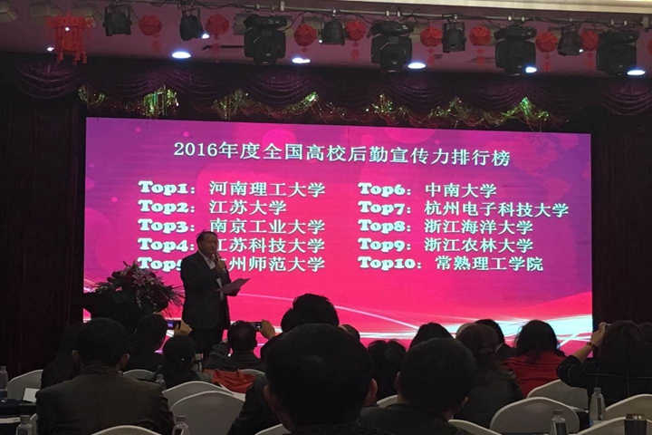 3月25日至28日,由中国教育后勤协会组织的“全国教育后勤系统信息宣传与理论研究工作(2017)年会”在苏州召开,会议对2016年度全国教育后勤系统信息宣传工作先进单位进行了表彰,并发布了2016年度全国高校后勤宣传力排行榜。会上,在中国教育后勤协会首次评选发布的全国高校后勤宣传力排行榜中,我校荣登榜首,并被授予“2016年全国教育后勤系统信息宣传工作先进单位”荣誉称号。