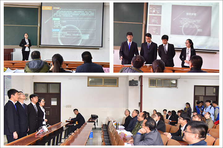决赛分为现场陈述和公开问辩两个环节。陈述环节,各个团队成员相互协作,结合制作精美的幻灯片或视频,借助产品实物或理论模型,分别从研究背景、研究方法、科研成果、社会经济效益等方面进行了简明扼要的阐述。问辩环节,来自学校各专业背景的19位资深评委对各作品相关内容进行针对性提问,参赛队员沉着应答、力求完美。评委们还对作品提出了专业的指导和点评,帮助选手全面审视作品的优势与不足。决赛现场学术氛围浓厚,气氛紧张而热烈。