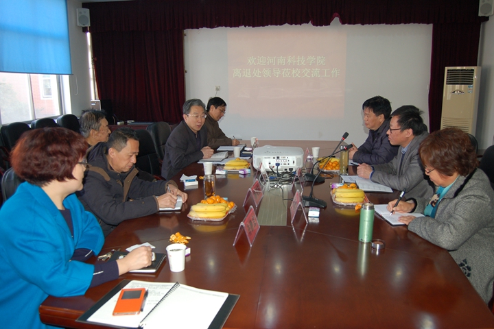 3月3日上午,河南科技学院离退休职工管理处处长韩香月、党委书记刘明鹏、副处长马根喜一行3人莅临我校考察关工委、离退休工作有关情况。校关工委在离退休教职工活动中心会议室举行座谈会。我校原校党委副书记、关工委副主任苗建勃出席座谈会,离退处党委书记兼关工委办公室主任王立东、离退处处长杨可臣,副处长赵文波、许静宜等有关同志参加了座谈会。座谈会由王立东主持。