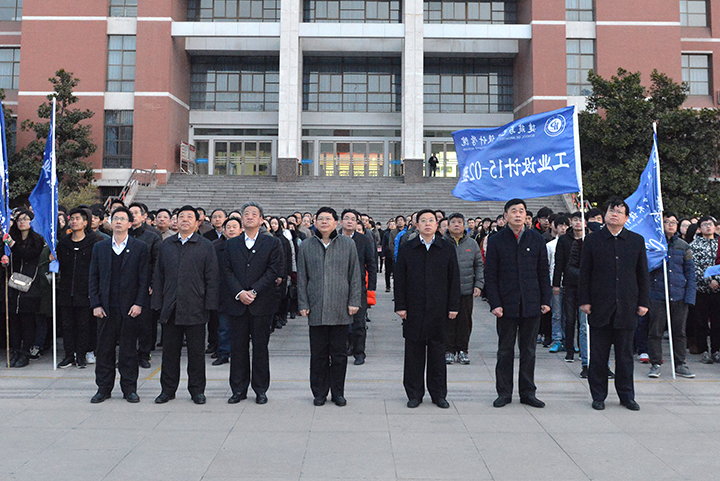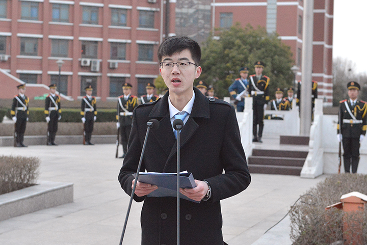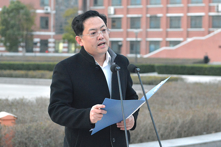 校长杨小林在升旗仪式上发表讲话。他指出,2016年学校各项事业结出了累累硕果:党建工作得到新加强,内涵发展实现新加速,人才引进实现新突破,教学科研取得新成绩,人才培养质量得到新提升,办学条件日臻完善。2017年,是学校深入实施“十三五”规划、加快“双一流”建设、推动转型发展的深化年、攻坚年和提升年,推动新发展、创造新业绩需要全体师生员工的共同努力、持续奋斗。杨小林借用三句古诗对全校师生提出三点希望:一是“一年之计在于春,一日之计在于晨”。希望各部门和各学院根据学校重点工作和工作要点,科学、系统、合理谋划好本年度工作,为学校工作计划的落实和推进打下坚实基础;希望广大师生做好新一年的规划,安排好工作、学习和生活,用一个个小目标实现自己的大目标,用青春梦点亮我们的中国梦;二是“宝剑锋从磨砺出,梅花香自苦寒来”。希望各级干部拿出一往直前的勇气、坚定不移的决心、舍我其谁的魄力、坚决有力的措施,发扬“自强不息”“奋发向上”的办学精神和克难攻坚、敢为人先的光荣传统,敢于啃硬骨头、敢于涉险滩,用实实在在的行动推动学校发展,用扎扎实实的工作实现宏伟蓝图;希望各位教师发扬“捧得一颗心来,不带半棵草去”的精神,做“四有”好老师,用心培育学生;要守得住清贫,忍得住孤独,顶得住压力,在学术研究的道路上勇攀高峰,在科研攻关的难题前勇挑重担,做出更多更好的学术成果;三是“书山有路勤为径,学海无涯苦作舟”。希望广大同学牢记圣贤先哲的教诲,在“勤”字上下苦功夫,在“苦”字上下勤功夫,在韩愈先生的故乡书写无愧于自己、无愧于时代的求学华章。最后,他号召全体师生深入实施学校“十三五”规划、全面推进学校综合改革、抢抓“双一流”建设发展机遇,撸起袖子加油干,以饱满的热情和优异的成绩迎接学校党代会和党的十九大胜利召开。学生代表宋鹏翔发言,他回顾了同学们2016年在学校学习生活的精彩表现,并倡议同学们在2017年“立目标”“做规划”“肯坚持”,做更好的自己。