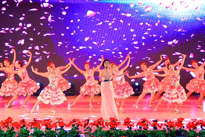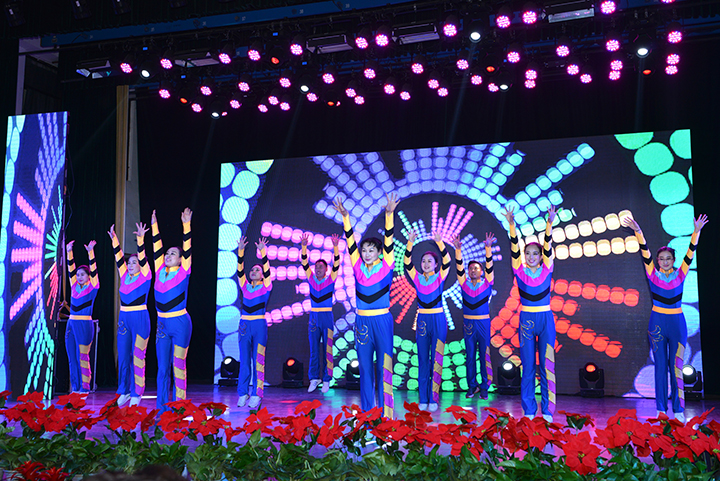 联欢会在女王合唱团的《思念》《花儿与少年》中拉开帷幕。附属幼儿园的舞蹈《春眠不觉晓》带给师生们春天的温暖与美好;幽默风趣的相声《好好学习》将现代元素加入传统表演,传承民族文化的同时,紧跟时代步伐;离退处老师们用葫芦丝合奏演绎了千古传颂的爱情故事,用美妙的声音诠释了《化蝶》的美丽凄婉;大学生艺术团舞蹈队带来的《高原》让在座师生感受到了茫茫雪域的万丈豪情,使其沉醉于浓浓的民族风情;化工学院的同学们表演的影子情景剧《梦影大学》用独特的方式向我们展现了美好和充满憧憬的大学生活;校园歌手带来的歌曲联唱《我的梦》《告白气球》《悟空》将晚会推向高潮。体育学院老师们的《出彩体育人》中的瑜伽、太极拳以及广场舞表演为师生们展现了全民健身、群众体育的靓丽风影。最终,晚会在音乐学院带来的歌舞《阳光路上》中落下帷幕。整场晚会融合了歌舞、相声、情景剧、器乐等多种表演形式,高潮迭起,异彩纷呈,为在场观众献上了一场精彩绝伦的视听盛宴。