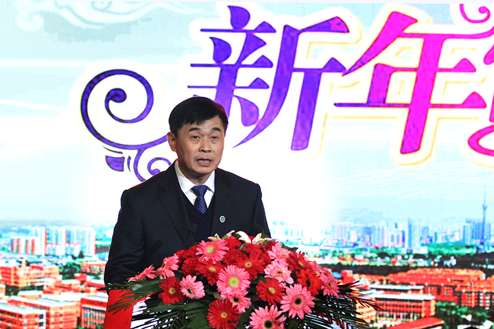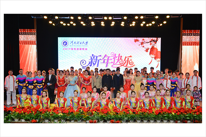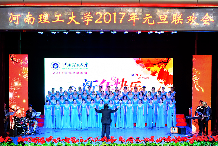 赵俊伟发表新年贺词,代表学校党委、行政向全体师生致以节日的问候和祝福,并简要介绍了2016年学校取得的主要成就,畅想了2017年的美好明天。赵俊伟指出,2016年学校各项事业取得长足发展:党建工作取得新成效;综合改革全面深化;师资队伍建设成效显著;教育教学改革稳步推进;人才培养质量进一步提升;学科建设与科技创新能力进一步增强;办学条件日臻完善,社会影响力显著提高,一年来的成绩可喜可贺。在新的一年里,学校将紧紧围绕“立德树人”的根本任务,为实现中原崛起、河南振兴、富民强省做出新的更大的贡献。