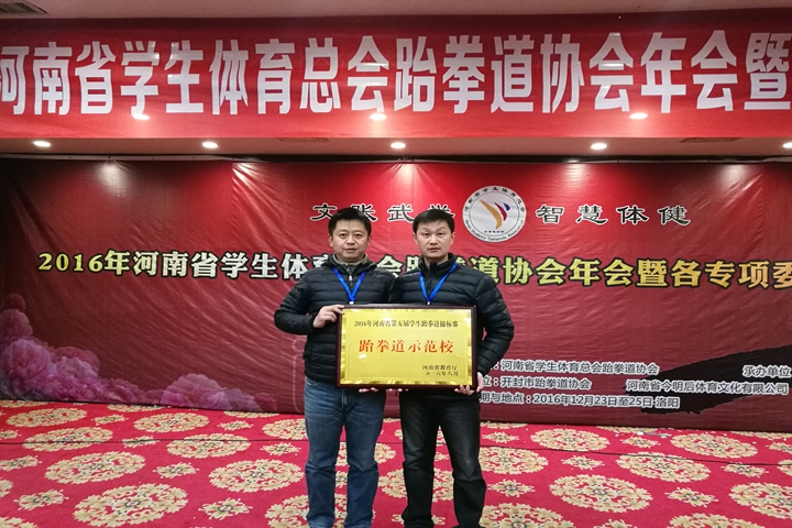 我校由于在2016年全国大学生跆拳道锦标赛和河南省大学生跆拳道锦标赛中成绩优异、贡献突出,被河南省教育厅评为“跆拳道示范校”,教练员常朝阳和运动员董钧凯(电气学院)被河南省教育厅通令嘉奖。这是我校继2012年再获该项殊荣,也是对我校近年来跆拳道运动群体活动开展和运动竞赛工作的最佳表彰。