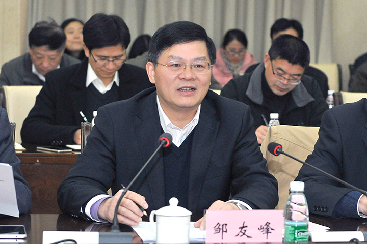 校党委书记邹友峰主持汇报会并致欢迎辞