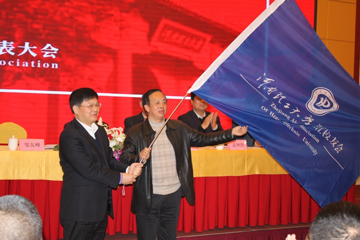 会上,邹友峰为浙江校友会颁授了会旗和贺幛,并向校友们介绍了学校近几年办学取得的成就。他希望浙江校友会创造性地开展工作,搭建好校友与校友之间、校友与母校之间的联络平台,促进校友和母校合作共赢、共同发展。