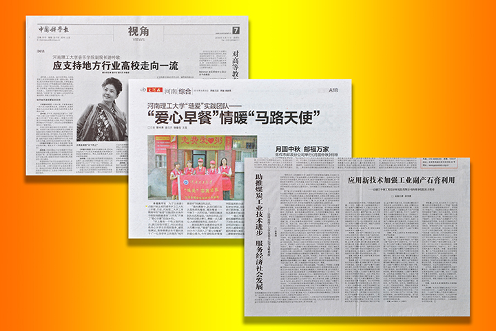 此外,针对新闻宣传的特点、规律,不断提升新闻策划能力,通过集中锤炼、精心打造,在《河南日报》《大河报》《河南教育》等发表了《河南理工大学校长杨小林:以创新驱动战略推进优势特色学科建设》《在新常态下奋力推动百年学府再创新辉煌——河南理工大学加快特色鲜明高水平大学建设侧记》《河南理工大学校长杨小林:奋力加快特色鲜明高水平大学建设进程》等重大稿件,使学校外宣工作体现时代性、把握规律性、富于创造性,保持了旺盛的生机与活力。