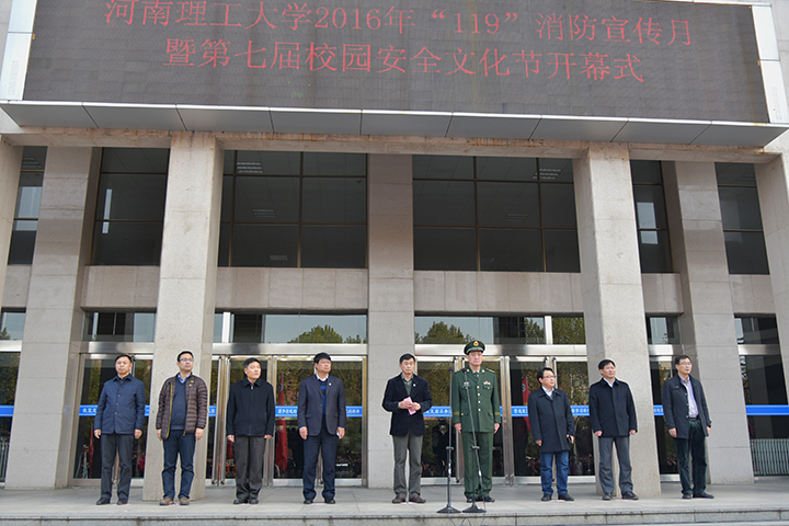 11月8日下午,2016年“119”消防宣传月暨第七届校园安全文化节开幕式在三号教学楼前举行。