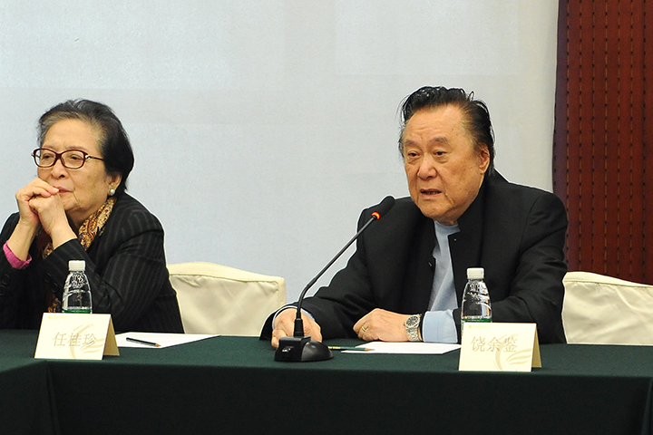 男高音歌唱家饶余鉴、女高音歌唱家任桂珍出席座谈会并讲话