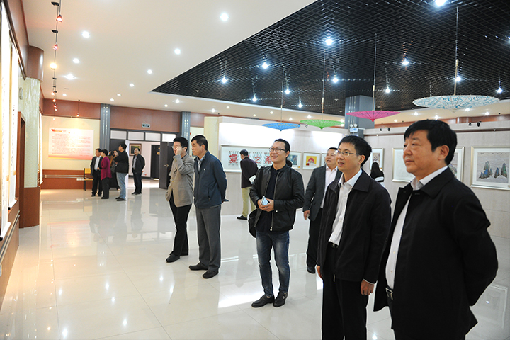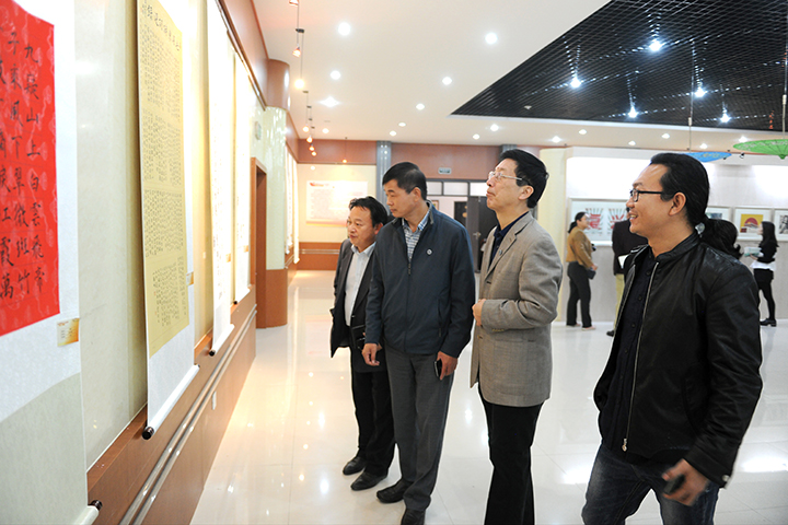 校党政领导邹友峰、杨小林 周志远、张琨、赵俊伟、翟传森、张尚字、解伟,校长助理孟钟剑参观展览并给予高度评价。