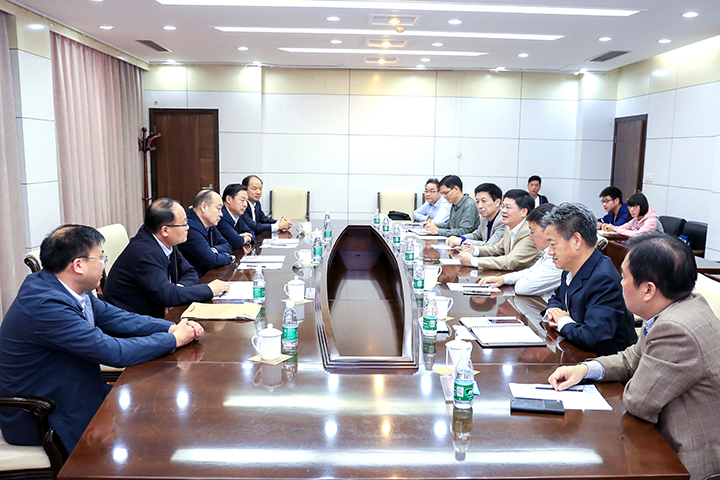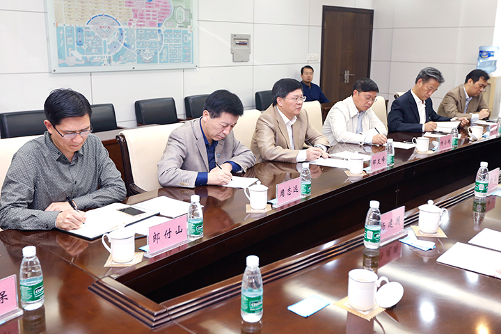 10月19日下午,中国平煤神马能源化工集团有限责任公司党委书记、董事长梁铁山一行5人莅临我校,就加强校企全面合作进行深入友好的交流。学校在行政楼二楼会议室举行座谈会。校党委书记邹友峰致欢迎辞,校长杨小林主持座谈会,校党委副书记周志远、副校长周英出席,党办、安培中心、泰科公司负责同志参加。