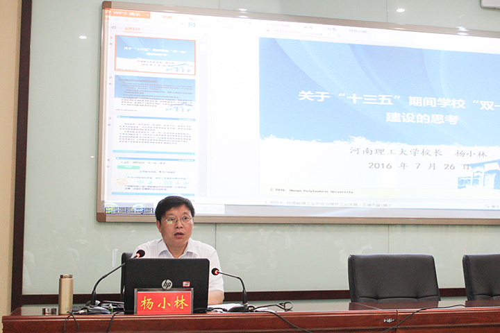 培训期间,校长杨小林为全体学员作题为《关于“十三五”期间学校“双一流”建设的思考》的报告。在报告中,杨小林明确了学校“十三五”期间的“双一流”建设目标,并就如何达成目标提出发展路径。他说,要实现“双一流”建设目标,必须坚持深化改革、提升质量、巩固优势、统筹兼顾、合作共赢,走创新发展、内涵发展、特色发展、协调发展、开放发展之路。他指出,建设“一流大学”,就是要革新教学理念,完善课程体系,优化教学过程,发挥学院主体作用。建设“一流学科”,就是要形成相对稳定的学科方向和动态调整机制,培育稳定的科研创新团队,发挥学科建设的龙头作用,理顺管理体制和运行机制。最终,通过“双一流”建设持续提升学校核心竞争力和办学活力,加快国内一流、特色高水平大学建设进程,全力服务国家安全生产、能源工业和区域经济社会发展。