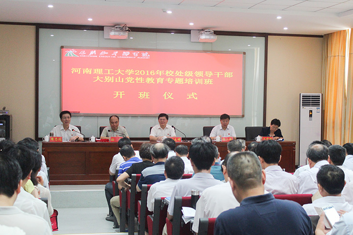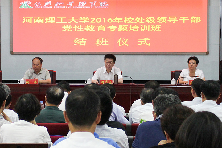 7月25日至29日,学校2016年校处级干部党性教育专题培训班在大别山干部学院成功举办,校领导邹友峰、杨小林、周志远、卫中玲、周英、张锟、赵俊伟、翟传森、张尚字、解伟和全校正处级干部参加培训。校党委书记邹友峰在开班仪式上发表重要讲话强调,学习弘扬大别山精神,就是要始终坚守信念、胸怀全局、团结一心、勇当前锋,在立根固本、提升站位、凝心聚力、开拓创新上下足功夫,为建设国内一流、特色高水平大学做出新的更大的贡献。
