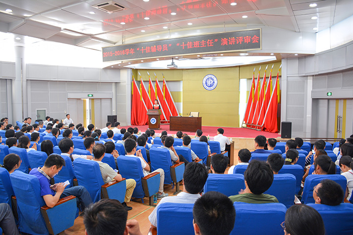 7月12日上午,我校在圆形报告厅召开2015至2016学年“十佳辅导员”“十佳班主任”演讲评审会。校党委副书记卫中玲担任评委并讲话,党委办公室主任郎付山、组织部部长田道敏、宣传部部长谢定均、学生工作部(处)部(处)长黄保金、校团委书记冯平、教务处副处长原东方、人事处副处长戎涛、研究生处副处长丁亚红、招就处副处长桑俊勇、学生工作部(处)副部(处)长孙彦担任评委。