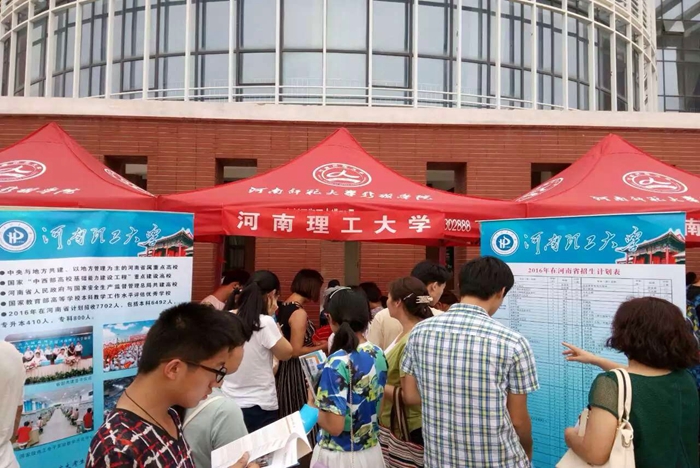 2016年招生就业处还通过《中国青年报》《河南日报》以及各省的招生计划专刊(考生人手一本)等平面刊物,河南电台、电视台,以及教育部阳光高考、河南省阳光高考等部分省份的招生官网等,发布招生信息,宣传学校特色;向全国3000所高中邮寄我校招生简章和宣传资料;在河南省二百余所高中内建立招生宣传展板和LED显示屏,寄语优秀学子,提示考生报考,进一步吸引优秀生源。在填报志愿期间,招生就业处还通过网站答疑、电话咨询、接待来访学生及家长等形式开展招生咨询宣传活动,平均每人每天接待咨询近百余人次,截至本科三批填报志愿,共计发放宣传材料2万余份。