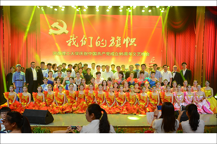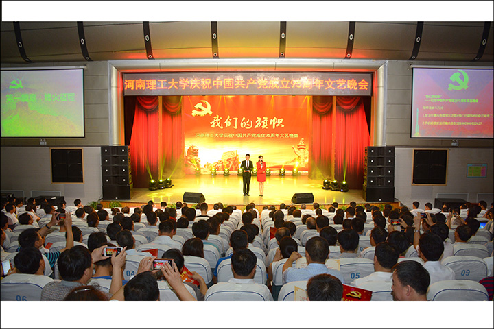 为隆重庆祝中国共产党成立95周年,弘扬爱国主义传统,激发全校师生的爱国爱党热情,7月1日晚,“我们的旗帜”——河南理工大学庆祝中国共产党成立95周年文艺晚会在小礼堂成功举办。校党委书记邹友峰,校长杨小林,中国工程院院士周丰峻,校党委副书记周志远、卫中玲,副校长张锟、赵俊伟,纪委书记张尚字,工会主席解伟,校长助理孟钟剑等出席晚会。学校受省级表彰的优秀党务工作者和优秀共产党员代表、师生代表一千余人观看晚会。