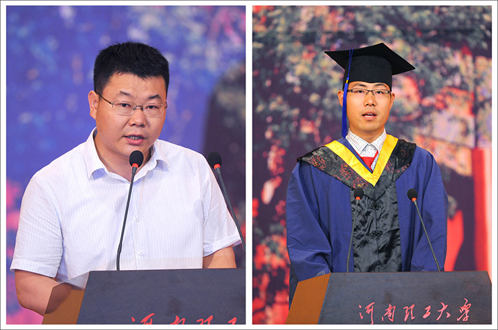 导师代表、资环学院教授郑德顺和毕业生代表、电气学院硕士研究生王志方先后发言,分别表达了对毕业生的美好祝愿和对学校的感激之情。