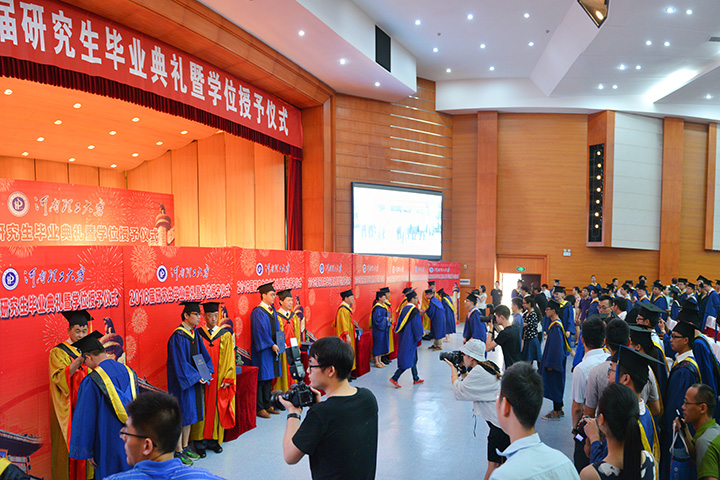 仪式第二阶段,校领导为全体2016届硕士毕业生拨流苏,颁发学位证书并合影留念。