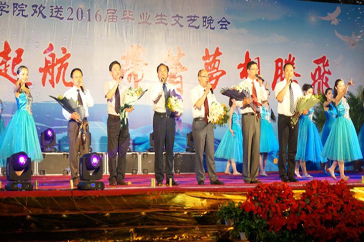 聚散天涯,依依万方,大江南北,情系理工。6月3日晚,万方学院“载着梦想起航,带着希望腾飞”欢送2016届毕业生晚会在院篮球场隆重举行。原万方科技学院院长王裕清、河南理工大学学生工作处处长黄保金、河南理工大学团委书记冯平、河南理工大学音乐学院党总支书记杨玉海、河南理工大学教务处副处长茅艳、河南理工大学研究生工作处副处长陈俊杰等受邀莅临现场观看晚会,学院党政领导张新民、郑伦仁、王海星、解东辉、邓乐、尹铁军以及各职能部门负责人与全体教职工同1700余名毕业生一起观看了晚会。