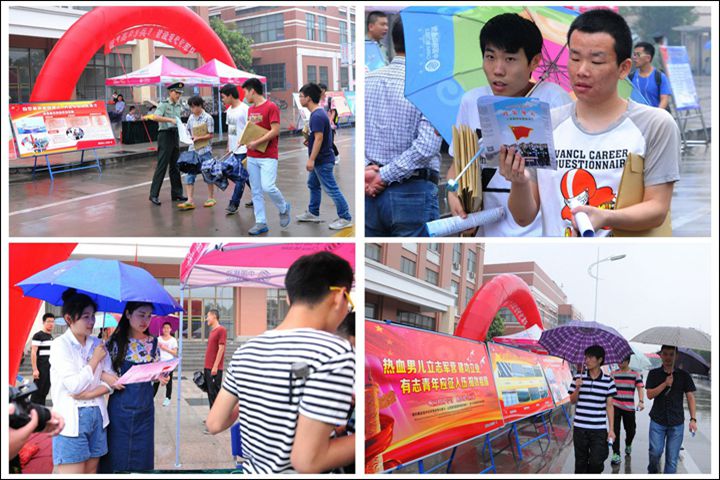 虽然细雨霏霏,但很多大学生驻足征兵宣传板前,了解此次征兵入伍条件和相关政策,现场咨询暨座谈活动吸引了我校诸多同学的目光,同学们对参军入伍的热情特别高,问了很多问题,其中比较关心的是参军要求和政策优待。