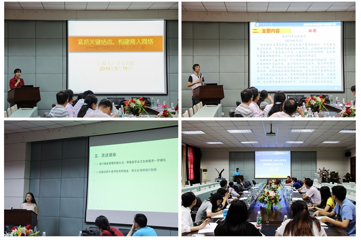 安全学院、测绘学院、土木学院、建艺学院、医学院共11名辅导员、班主任代表做了主题发言。各位代表主要围绕“如何引导学生确立四年发展规划与发展定位”和“研究与讨论辅导员进驻宿舍机制改革与完善问题”两个主题开展交流。每位代表结合所在学院和自身实际情况,在工作的整体思路、措施方法、成效与问题方面进行了充分的交流。代表们发言完毕,在座的全体老师开展了主题研讨活动。