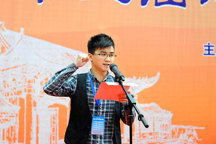 我校电信2013级学生董春辉代表参赛选手宣誓。