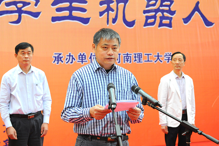 张水潮宣布第三届河南省大学生机器人竞赛开赛。