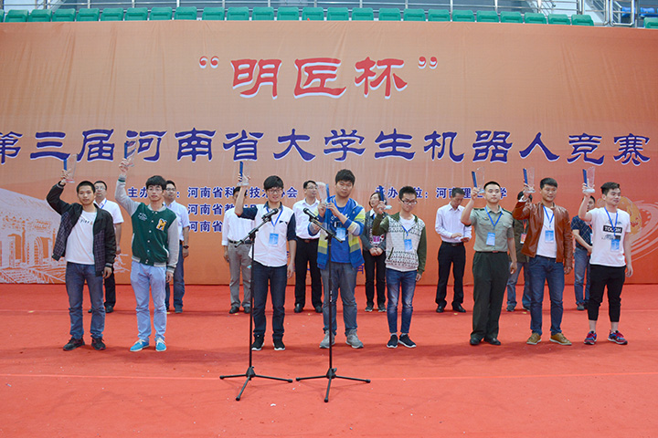 5月15日,由河南省科学技术协会、河南省教育厅、河南省科技厅主办,我校承办的第三届河南省大学生机器人竞赛在我校南校区体育馆成功举行。