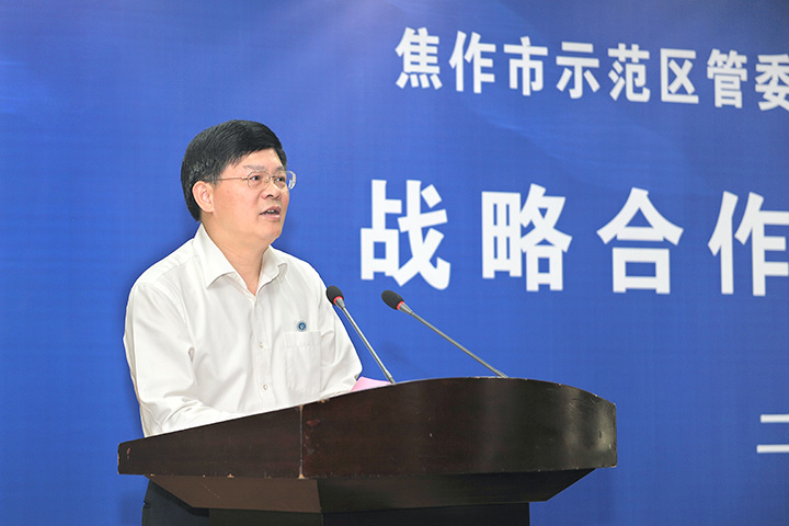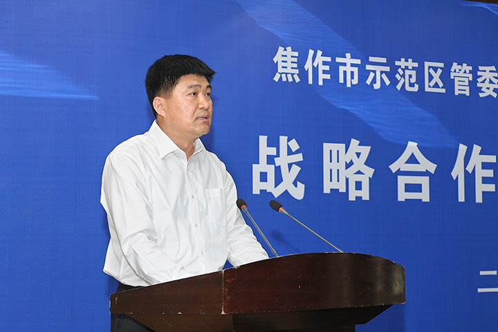 李平启在仪式上发表讲话。他指出,示范区是焦作市最具活力和潜力的经济板块,一贯重视科技和人才工作。河南理工大学在服务示范区、焦作市乃至河南省经济社会发展方面做出了积极贡献。示范区将一如既往地支持河南理工大学发展,并通过这次战略合作协议的成功签订,进一步深化校地合作、共谋双赢发展。