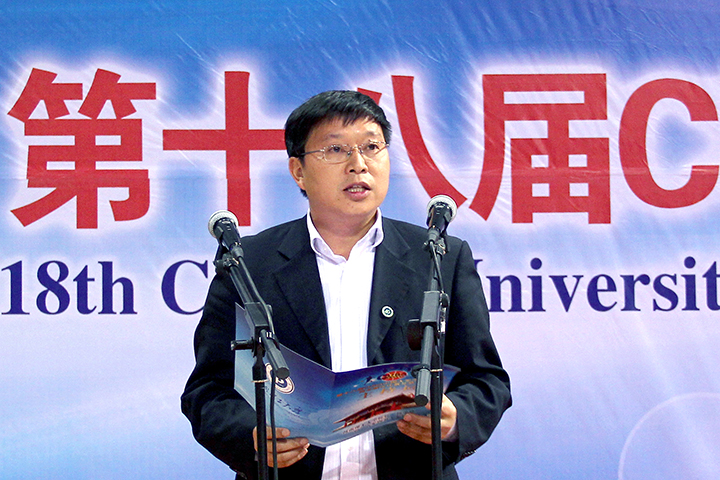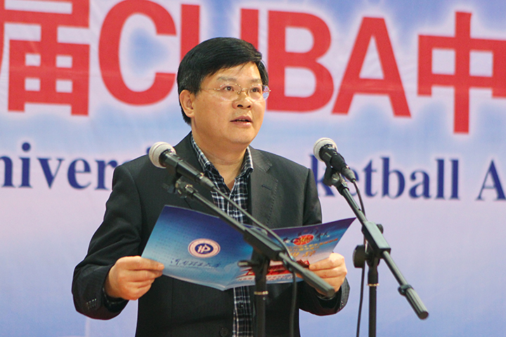 杨立国宣布第18届CUBA中国大学生篮球联赛西北赛区比赛开幕。