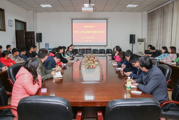 为进一步促进高校学生工作品牌建设,在第五届河南省高校辅导员职业能力大赛于我校隆重举行之际,3月24日晚,由校学生处主办、安全学院承办的以“学生工作品牌建设”为主题的辅导员沙龙在该院304会议室举行,30余位来自全省各兄弟院校的学生工作一线的领导和辅导员参加了本次活动。