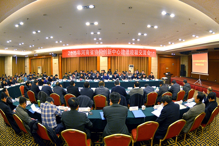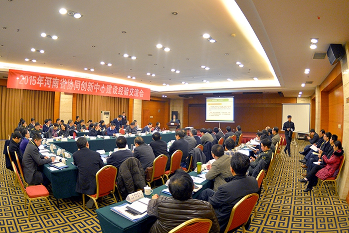 12月29日上午,由河南省教育厅主办、我校承办的“2015年河南省协同创新中心建设经验交流会”在焦作迎宾馆召开,河南省教育厅科技处处长孔繁士、副处长张水潮,郑州大学副校长王宗敏,河南科技大学副校长谢敬佩,信阳师范学院副校长刘彦明,安阳师范学院副校长杨新新,我校党委副书记周志远、副校长周英等出席会议,来自全省19所高校、1个国家级协同创新中心和36个省级协同创新中心的120余名代表参加了交流会。会议由周英主持,分两个单元进行。上午进行了大会发言交流,下午进行了分组讨论。最后,孔繁士和张水潮进行了总结。