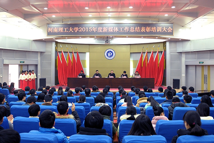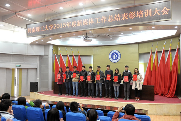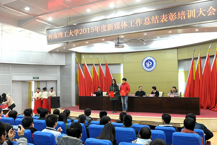 12月22日下午,学校2015年度新媒体工作总结表彰培训大会在力行楼学术报告厅举行。校党委宣传部部长朱雪里、建筑与艺术设计学院党委书记茹艳、校团委副书记阎俊豪以及全校二级单位通讯员、群团组织代表和校园微博达人等近300人参加会议。